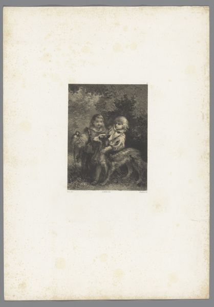 Editor: This is "Liefde en Vriendschap," or "Love and Friendship," an engraving by Hyacinthe-Louis-Victor-Jean-Baptiste Aubry-Lecomte from 1850. It depicts a winged figure standing beside a draped woman, with cherubs nearby. It feels like a very formal, staged representation of an ideal. What can you tell me about its historical context? Curator: Well, Romanticism in 1850 was deeply entwined with ideas about morality and national identity. Allegories like this, disseminated widely through prints, served as visual instruction. Consider the museum space itself – how does the Rijksmuseum's display of this work contribute to its meaning? Is it presented as a historical artifact, or does it invite a contemporary interpretation of these allegorical figures? Editor: That's interesting. I hadn't thought about the museum's role so directly. So, an image about Love and Friendship also communicates about societal values? Curator: Absolutely. Notice the controlled composition, the idealised bodies. The visual language points to a specific understanding of virtue. To whom was this message directed, and what power structures did it uphold through its idealised vision of relationships? Was this truly representative of everyday experiences or of certain classes? Editor: I see it now; beyond the sentiment, there's a whole system of social expectations embedded here. I initially saw it as purely sentimental but understanding its dissemination as a print gives a totally new view. Curator: Precisely. It encourages us to think about how images, even seemingly innocuous ones, participate in shaping social norms. This work isn’t just about “Love and Friendship,” but about how those concepts were actively shaped and presented to the public, in very controlled settings. Editor: This has completely changed my perception of it! It's amazing to think of art operating on that level of social commentary. Curator: Indeed! Every image has its place within a web of institutions, values, and social expectations that shape its meaning.