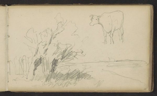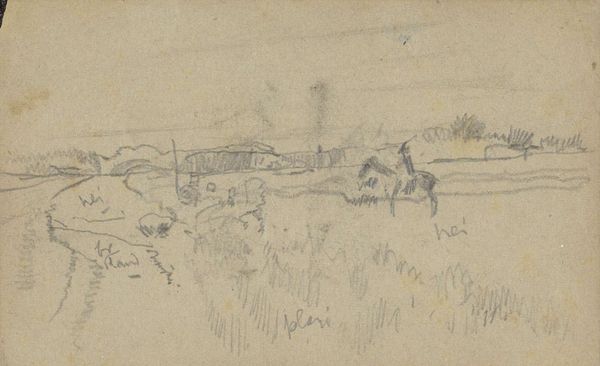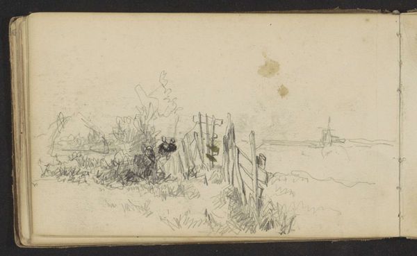 Editor: Here we have Johan Hendrik Weissenbruch’s “Landschap met bomen en een molen,” placing us sometime between 1834 and 1903. It's a pencil drawing housed at the Rijksmuseum. The sketchiness really stands out – it feels like a fleeting observation. What can you tell me about this piece? Curator: This seemingly simple landscape drawing invites us to consider the socio-economic realities of the period. Notice the prominent windmill in the background. Windmills powered the industrial processes transforming the Netherlands at that time, shaping labor practices and the very fabric of daily life. Editor: So, you're suggesting the windmill isn’t just scenery? Curator: Precisely. Consider also the pencil itself – a manufactured object. Its widespread availability signifies a shift towards mass production and increased literacy. Weissenbruch's choice of this readily available material, rather than more traditional drawing materials, speaks volumes. What kind of labor do you think underpinned pencil manufacture? Editor: I never thought of it that way, but yeah, someone had to make those pencils. Thinking about it, his choice might imply a kind of democratizing impulse, moving away from the preciousness associated with "high" art materials. Curator: Absolutely. And look closer. How does Weissenbruch use the pencil? Are the lines expressive and varied, or are they uniform? Editor: They're definitely varied, light and dark, quick strokes. Curator: Exactly. And those variations relate to labor of observation and drawing, marking his particular experience and skills. What a complex history and significance lies in this simple landscape, where Weissenbruch documented it with easily accessed materials, produced to support an industrialized society! Editor: That’s so interesting; I now see beyond the initial tranquility and towards a representation of how industrialism and social changes are shaping art itself! Thank you.