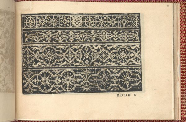 This is a page from "Corona delle Nobili et Virtuose Donne", printed in Venice in the late 16th century by Cesare Vecellio. In a time when printed books were increasingly available, Vecellio created a series of woodcut patterns intended for the needlework of noble and virtuous women. The designs offer us a fascinating glimpse into the lives of women during the Renaissance. Skill in needlework was a defining characteristic, and pattern books provided women with the means to express creativity. The geometric layout of the book also reflects the cultural expectations for women. Note how the designs incorporate a mix of Christian and secular themes, like birds and foliage, which could be interpreted as representing virtues such as piety, diligence, and modesty. Vecellio's book embodies both the creative potential and the constraints placed upon women of the period, whose identities were so closely tied to domestic roles.