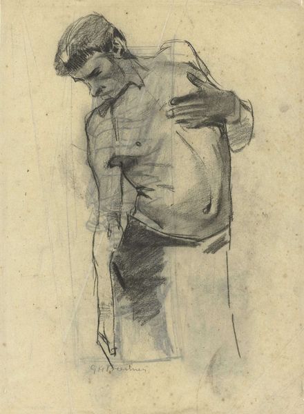 Rik Wouters created this drawing, Skipper, with ink on paper. The sketch offers a glimpse into the social fabric of early 20th-century Belgium, a period marked by rapid industrialization and evolving class structures. The subject, possibly a worker, leans into his task, revealing a sense of labor and perhaps the social stratification inherent in Belgian society at the time. Wouters, who was trained at the Academy of Fine Arts in Brussels, would have been aware of academic conventions and the social function of art as a reflection of cultural values. Was he critiquing the social order or simply capturing a moment in time? By examining the cultural and economic conditions of Wouters' Belgium, and looking into archival sources, we can better understand the role of art in shaping and reflecting societal norms.