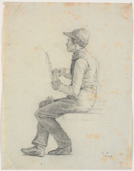 Alfred Cornelius Howland created this drawing, 'The Old Soldier - Berncastel', using graphite on paper. Howland lived and worked between 1838 and 1909, a period of great social upheaval in Europe and America. Here, the old soldier, presumably Prussian, is portrayed as a figure of dignity, recalling military history and conservative values. The image may have been intended for popular consumption, as these were times of emerging nationalism and nostalgia for a past heroism. It's important to consider the social and political context in which art is made. The image's visual codes, such as the uniform and the walking stick, signal historical associations with the military. The location, Berncastel, is in the Moselle region of Germany, a region with a rich military history. It is important to also consider how Howland’s own social and political views might have influenced his artistic choices. Art historical research, including studies of the artist's life and times, can shed light on its meaning and significance. By examining the social and institutional context in which art is produced, we can gain a deeper appreciation of its power and complexity.