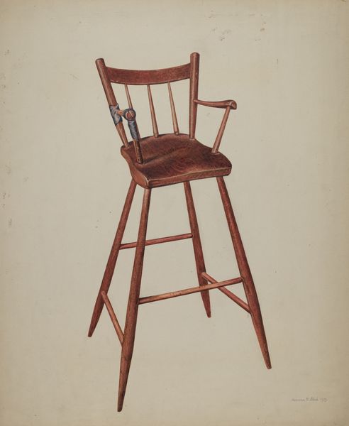 Here we have Frank Gutting’s “High Chair (for infants),” made with what looks like watercolor. The careful layering of browns and blacks creates a sense of depth and volume. You can almost feel the smooth, polished wood and the slightly worn leather of the seat. Look closely at the way Gutting used subtle variations in tone to define the edges and curves of the chair. It’s a delicate dance between observation and interpretation. The thinness of the paint allows the surface of the paper to peek through, adding a sense of lightness. I love the way this piece highlights a commitment to capturing the essence of an everyday object. It reminds me a little of Fairfield Porter, who also painted domestic scenes with a similar eye for detail and quiet beauty. Gutting reminds us that even the most ordinary objects can be sources of contemplation and delight.