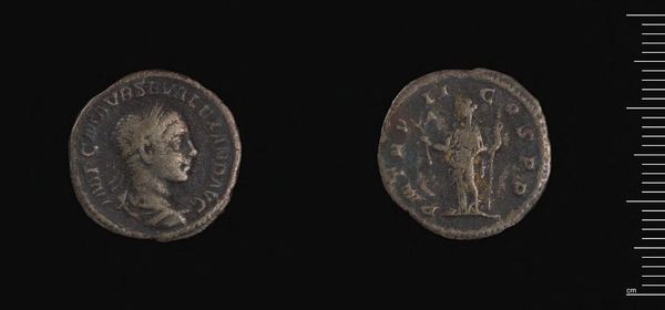 Editor: Here we have a Denarius of Severus Alexander. It's quite small, and you can see the wear and tear on the metal. What can you tell us about its importance? Curator: Its value lies in understanding material culture. Coins like this were instruments of power. The labor in mining, refining, and minting this metal represents a huge investment. Editor: That's interesting. Curator: Consider the inscription. Who benefited from its circulation? The coin itself facilitated trade, but it also served as propaganda. How did it shape consumption? Editor: I hadn't thought of it that way. It's a mini-billboard! Curator: Exactly! And seeing the physical coin, rather than just reading about it, brings the past into sharper focus. Editor: I'll definitely look at ancient currency differently now!