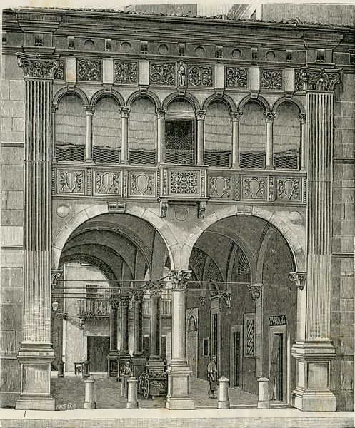 Giuseppe Barberis captured Porta Del Palazzo Calzaveglio in an engraving, showcasing the architectural grandeur of its time. The artwork uses line and form to create a richly detailed view of an Italian palazzo entrance. The engraving’s meticulous lines define the archway, the fluted columns, and the ornate carvings above. Notice how Barberis uses hatching and cross-hatching to model the depth and texture of the stone, giving a tactile quality to the scene. The use of perspective draws your eye into the shadowed depths beyond the doorway, promising a glimpse into the world within. The rigorous structure of the architectural elements reflects a formal approach, yet the details soften this rigidity, hinting at the underlying structure of power and culture embedded in the architecture itself. The shadows suggest hidden spaces and unwritten histories, inviting viewers to consider how the architecture embodies and performs cultural meanings.