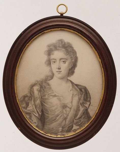 Curator: Alright, let's see. Editor: Here we have “Ubekendt mand,” or “Unknown Man,” painted sometime between 1756 and 1804 by Cornelius Høyer. It’s a miniature portrait. There’s a sort of faded elegance to it; almost like a cherished memory. What captures your eye about this piece? Curator: It feels like a whisper of powdered wigs and hushed conversations, doesn't it? Imagine carrying this tiny portrait close to your heart, a secret kept in a locket. What secrets do you think this man held? He's staring right through us, isn't he? It almost gives me a ghostly chill! Editor: He does have an intense gaze! Maybe a political secret, or a forbidden love? But look at the artistry: such fine detail in miniature! What’s your impression of the technique? Curator: Exquisite! Höyer truly captures the Rococo style here. Soft pastels blend so seamlessly; you almost don't notice the brushstrokes. The translucent skin...he’s giving us the luxury of 18th century in an enchanting bite-sized package. Think of the layers of meaning in this era of portraits: power, love, intrigue...and always, always mortality. Does that change how you perceive the image at all? Editor: It does! Thinking about it being kept as a locket—what a personal, almost intimate experience compared to today's portraiture. It's quite poignant. Curator: Absolutely, we could get lost pondering who he was! Sometimes, it's just about appreciating that quiet, reflective gaze that connects us across centuries. A little "who *are* you, oh powdered man!" I always appreciate pondering that, anyway. Editor: I like that. It's amazing to think about what stories an image can evoke, even without a name. Curator: Precisely. It shows you what art is: something bigger, better, deeper, broader.