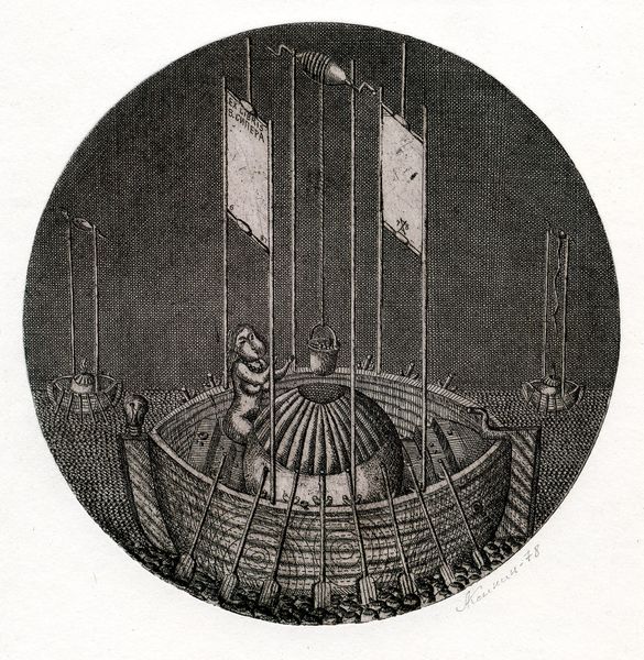 Oleksandr Aksinin made this bookplate called Exlibris V. Valdemarov using etching techniques, and what I notice right away is how much labor and love went into its making. You can tell he was obsessed. Look at how Aksinin built up the tones with all those tiny, tiny marks. Is that pointillism I see? The texture is incredible. The lines create this mesmerizing, almost hallucinatory effect. The two goddess figures flank the central image like a pair of sentinels. It reminds me of Odilon Redon's dreamlike visions. Do you notice the way the lines are cross-hatched to create depth and shadow? See, that intensity of detail invites us to slow down and really examine every single mark. Aksinin's work is about embracing ambiguity. It is a testament to the endless possibilities of art to shape our perceptions and create new ways of experiencing the world.