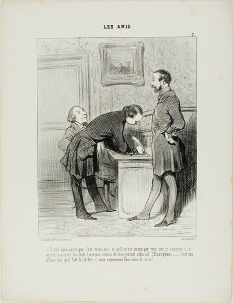 Honoré Daumier made this lithograph sometime in the 19th century. The print depicts three men of justice, as the title states, and in the foreground a seized water jug, without water, reads the caption. Daumier made many such prints for the French newspapers. Here, he satirizes the pomposity of the French legal system with his signature wit. The judges are drawn with grotesque features; one holds aloft a feather, likely meant for writing decrees. The room is sparsely furnished, suggesting the emptiness of their justice. Daumier was deeply influenced by the social and political turmoil in France at the time. It's clear that he saw the justice system as corrupt and ineffective, more concerned with procedure than with actual justice. A study of French legal history of the period, along with the artist's other prints, clarifies the themes and context of this artwork. The true meaning of art emerges when we consider its social and institutional context.