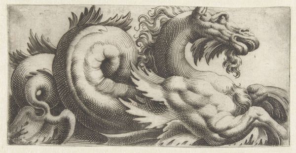 This fantastic creature was made by Adam Fuchs, sometime before 1606, using the intaglio printmaking technique of engraving. This means that the image was incised into a metal plate, probably copper, with a tool called a burin. Look closely, and you’ll see that the artist built up the image line by line, using hatching to create tonal variation and suggest three-dimensionality. Consider the artist’s skill here, and the number of hours that it took to complete this small, but detailed design. This reminds us that even prints – often considered multiples, and therefore less precious than one-off artworks – are deeply rooted in skilled hand labor. It would have been printed in multiples, allowing this strange image to circulate and to be acquired at relatively low cost. This engraving is a reminder that the impact of an image lies not only in its content, but in the means of its production and circulation.