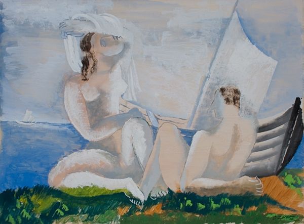Rudolf Bér painted ‘Suzanna’ in the 20th century, although the exact year remains unconfirmed. The painting depicts the biblical story of Suzanna, a woman desired by two elders. This subject matter has roots in traditional art, but Bér's interpretation provides a modern perspective. It reflects on the power dynamics and social expectations placed on women. The artist grew up in Hungary in a Jewish family. During the Second World War, he was deported to Auschwitz and other concentration camps. After the war he worked in a collective artists’ colony. In 1956, he fled the country during the Hungarian Revolution. The topic of Suzanna touches on the powerlessness of victims and the abuses of power by figures of authority, perhaps echoing the artist's experiences during the war. To fully appreciate ‘Suzanna’, one must delve into the historical and social context of its creation, exploring the artist's life experiences and the cultural norms of the time. These contexts enrich our understanding of the artwork.