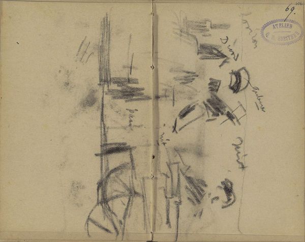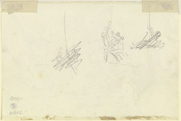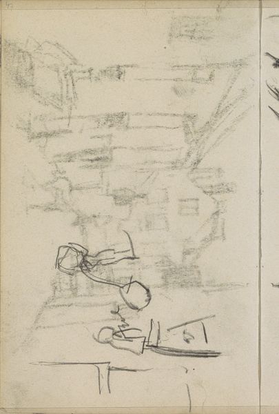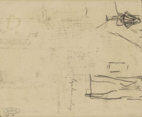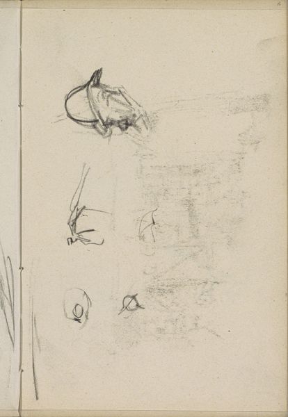 Editor: Here we have George Hendrik Breitner’s "Opstelling van de rijdende artillerie," created between 1884 and 1886. It’s a pencil drawing held here at the Rijksmuseum. It’s so sparse, almost like a fleeting memory. I'm curious about the quickness of the sketch. What do you see in this piece? Curator: This drawing, while seemingly a simple sketch, offers a crucial insight into Breitner's engagement with representing modern life and military culture. The loose, impressionistic style captures the dynamism of the artillery, hinting at a world of social upheaval and evolving national identities. It challenges us to consider how military power and masculine identity were being visually constructed during this period. What kind of a relationship do you think an artist has with this display of force? Editor: I see it! It seems like more than just observation, but perhaps Breitner is commenting on or questioning something. Curator: Precisely. Consider the societal role of the military at the time, particularly regarding nation-building and colonial expansion. Breitner, working during a period of significant militarization, places these figures not on a heroic pedestal, but almost caught on the periphery, inviting questions about Dutch imperial ambitions and potential human cost. The looseness invites a reading against the grain, maybe. Do you feel any tension there? Editor: I do. Now I wonder if the sketch-like quality, that transience, perhaps it speaks to the temporary or even unstable nature of power itself. Curator: Exactly! He leaves much unsaid. By choosing not to depict a heroic or glorifying scene, Breitner opens space for the viewer to contemplate those structures. I see your thoughts evolving right here, situating this piece within discussions of Dutch history and power. Editor: That's really broadened my perspective. Thanks for the conversation!
