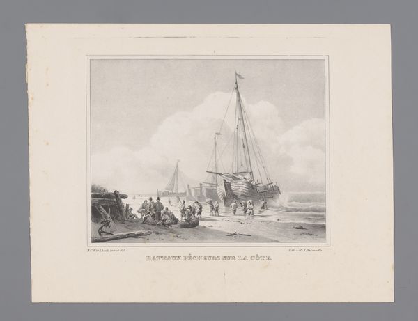 Curator: This etching is titled "Glibfiskere i Limfjorden," placing us in the Limfjord, a body of water in Denmark, sometime between 1870 and 1881. It is a work by Hans Smidth, currently residing at the SMK, Statens Museum for Kunst. Editor: There’s a certain starkness to it. It's incredibly detailed for an etching, but the lack of color lends a feeling of isolation to these figures wading through the water. A somber sort of toil, wouldn't you say? Curator: Definitely. The choice of etching, as a medium, is important here. Look at the lines, the precise control Smidth had to exert. This wasn’t a quick sketch; this was deliberate, painstaking work. The act of etching itself mirrors the labor being depicted—repetitive, demanding. Editor: And look at the iconography. Those hats! The man in the top hat, especially. He disrupts the presumed homogeneity of the laboring class; what does his presence signify about social mobility, or perhaps disguised exploitation? It feels charged with meaning. Curator: Perhaps it suggests an interesting interplay between local labor practices and wider economic shifts. This "gleaning," as the title hints, could be tied to specific communal regulations, an allowed practice even for the poor. Editor: You’re suggesting it might carry the weight of established traditions? While these fishermen clearly grapple directly with the materiality of their work, the image suggests the weight of symbols, the hats a marker for shifting or contested social positions. There's tension brewing just beneath the surface. Curator: Precisely. Etching also offered avenues for broader circulation; prints such as this allowed such images of labor to reach larger audiences. So it depicts work, but it’s also *working*, isn’t it? Editor: A subtle class critique rendered in monochromatic tones, if you will. These are figures defined by work and circumstance—rendered visible through the careful deployment of line and shadow. Quite powerful, indeed. Curator: Exactly! Smidth invites us to see beyond the immediate image, to consider the layered processes of production and meaning-making, both within the frame and beyond. Editor: It really showcases how a single image can become such a compelling carrier for multifaceted stories, both explicit and tacit, simply through the arrangement of culturally charged symbols.