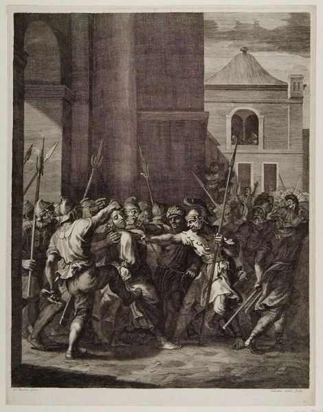 Editor: Okay, next up we have “The Cross of Christ,” a monochrome drawing attributed to Albrecht Dürer. Looking at it, I’m immediately struck by the chaos of the scene. What really stands out is how Christ seems almost swallowed by the crowd. How do you interpret this work? Curator: Dürer's "The Cross of Christ" throws us headfirst into the tumultuous intersection of power, faith, and suffering. Notice how Dürer’s Northern Renaissance sensibilities place this highly emotional, spiritual moment within a contemporary setting. Look closely, and you'll see the guards and the jeering crowd aren't figures from biblical history but rendered as people from Dürer's 16th century Nuremberg. Does that observation give you a new perspective? Editor: It does! It makes it feel much more…immediate. Less like a removed religious event, and more like something happening in real time. I guess that makes the question of responsibility more pointed too. Curator: Precisely. By placing the crucifixion in his contemporary world, Dürer implicates his own society in the narrative of oppression. The charcoal rendering emphasizes the grittiness, the suffering. How does this historical context affect your reading of Christ’s suffering, considering ongoing social justice struggles? Editor: Wow, that’s powerful. Thinking about it that way, it makes me question how historical narratives, particularly religious ones, can be used to both justify and challenge existing power structures. The contemporary rendering is almost like a call to action! Curator: Exactly. It forces us to confront uncomfortable truths about the cyclical nature of injustice and how easily we can become complicit. The art invites crucial dialogues around power, resistance, and the continuous need for empathy and activism. Editor: That is something I hadn’t fully considered when I first saw this drawing. Thank you. Curator: My pleasure. Art's role is to incite inquiry; it is not a dead object.