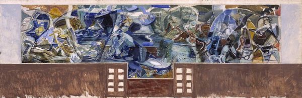 Curator: Look at this impressive mosaic panel. This is “Earth. Cosmos,” created in 1968 by Valerii Lamakh for the Iskra Palace of Culture, now part of the Azovmash plant in Mariupol. The work uses a mixed-media approach, primarily mosaic tiles. Editor: My immediate impression is how fragmented the images seem. The distinct tile work creates this stunning abstract quality—a mosaic of the cosmos, really. I find its visual language captivating, yet I find it also a challenge to see any immediate representational objects or subjects here. Curator: The tiles themselves offer a critical clue. Consider their availability and origin. Mass-produced during the Soviet era for public spaces, their standardization reflects the collectivist ideology underpinning projects like this Palace of Culture, intended for the workers of the Zhdaniv Heavy Machinery Plant. Editor: Yes, I see. The geometry is very pronounced. Notice the circular and rectilinear forms: one almost senses them competing with the jagged, broken tile edges, disrupting pure geometry with pure materiality. This friction brings life to an otherwise static arrangement of basic shapes and celestial forms. Curator: Absolutely. Lamakh’s commission speaks to the larger network of artists employed to create these works of public art during this time. This artistic endeavor was a collaboration—between the artist, the factory, the cultural administration, and the mosaicists implementing the design, it shows the industrialization of artistic labor and reflects an intricate web of production and consumption. Editor: Do you believe the piece carries much symbolism, given its abstract forms? Curator: Yes. The very title of the artwork connects both earth and cosmos. The depiction of the cosmonaut suggests Soviet advancements in space exploration, while the terrestrial components ground the work within a tangible reality. Even in its fragmentation, the work reflects a hopeful, yet controlled, vision of progress, deeply rooted in the worker's everyday life. Editor: Well, now I am also seeing the mosaic not just as a play of fragmented geometries but as a layered interplay of national ambition, technological drive, and, finally, of labor and industry as essential means for creating any kind of artistic expression. It is such an important work to appreciate. Curator: Indeed. Thinking through its means of production makes me contemplate how public spaces in Soviet-era Mariupol were designed for the very public it sought to serve.