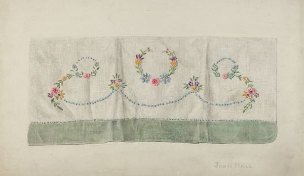 Marie Famularo made this drawing of Embroidered Edging, we don't know exactly when, with what looks like graphite or charcoal on paper. The wispy lines are incredible. I love the way she’s thinking through the image, finding the form as she goes. It’s interesting, isn’t it, how she renders the material qualities of the fabric and embroidery with such simple means? The texture feels so delicate. Look closely, and you can see the subtle gradations in tone, how she uses the weight of the line to suggest depth and shadow. There’s a real tenderness in the drawing, a feeling of care. The repeated motif of leaves and berries, rendered with a sort of loose precision, is kind of hypnotic. This piece reminds me a little of the work of Ree Morton, who also had an interest in domestic craft, and the way that so-called feminine forms of making could be elevated to high art. It's all about embracing the process, isn’t it? Leaving space for intuition and accident, and trusting that something beautiful will emerge.