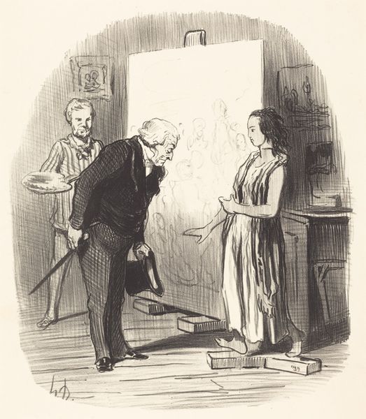 Reinier Craeyvanger created this intimate portrait of Wilhelmina Frederica Sophia van Pruisen and her husband, King Willem I, using pen in brown, brush in brown and gray, and graphite. Notice the rapid, expressive linework, a process marking a departure from the highly polished, formal portraits typical of royalty. Craeyvanger's choice of humble materials—pen, brush, and graphite—suggests a more informal, immediate approach. The sketch-like quality brings us closer to the sitters, inviting a sense of intimacy. Consider the social context: during this era, the rise of industrialization and evolving class structures began influencing art. The artist's technique reflects this changing landscape, moving away from idealized depictions. The act of drawing itself becomes a kind of labor, capturing a moment in time. Craeyvanger’s drawing invites us to consider the making of images, and the value we place on different kinds of labor.