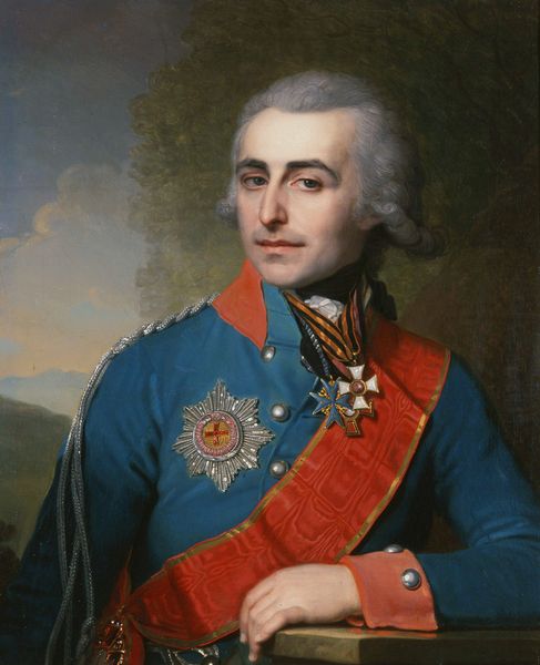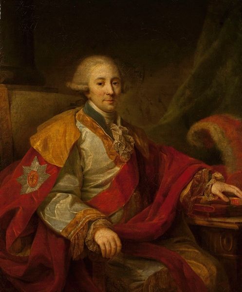 Guillaume de Spinny painted this portrait of Vice-Admiral Hendrik Lijnslager, though the exact date remains unknown, its visual impact is immediately clear. The composition balances formality with dynamic elements, inviting analysis through its structured yet subtly expressive forms. De Spinny's use of line and color articulates Lijnslager’s status and character. The swirling gold embroidery against the dark blue coat creates a sense of movement and opulence, contrasting with the calm, controlled expression of the subject. This juxtaposition plays with the semiotic codes of 18th-century portraiture, reflecting both personal identity and broader societal roles. Note how the globe and distant ships subtly reinforce themes of exploration and authority. The artist’s attention to detail invites us to consider how such portraits functioned within the period. The painting not only represents an individual but also signifies the complex interplay of power, knowledge, and representation inherent in the Dutch maritime world. These portraits are more than likenesses; they are constructions of identity.