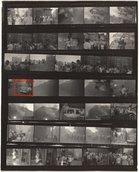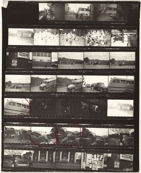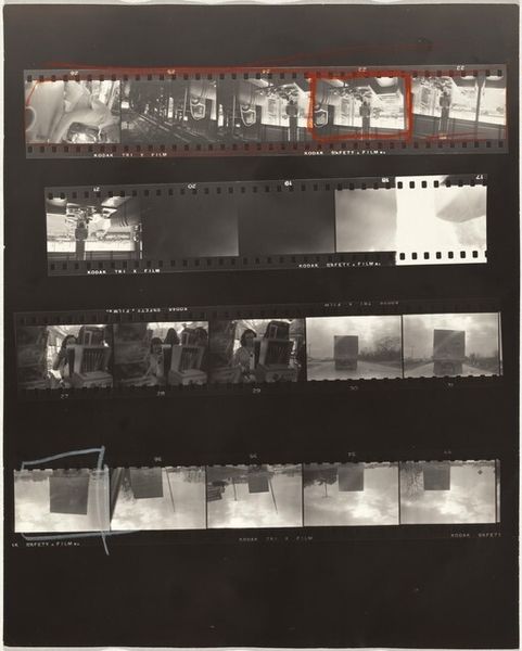 Robert Frank made this contact sheet in 1955, during his road trip across America, using a 35mm Leica camera and black and white film. The material qualities of the photographic print—its tonality, grain, and contrast—influence our perception and understanding of the images. The filmstrip format presents a sequence of frames, offering glimpses into Frank’s photographic process and decision-making as he captured scenes of everyday life. Each frame contains a wealth of information, hinting at stories beyond the surface. Frank's methodology, traveling across America and capturing images, reflects a sense of freedom, exploration, and a desire to document the nuances of American society. But this project was funded by a Guggenheim Fellowship, with conditions attached. The work of photography, from shooting to developing, printing, and editing, required technical skill, manual labor, and a critical perspective on society. Ultimately, recognizing the intrinsic relationship between materials, making, and context encourages us to look beyond traditional art distinctions and recognize photography's capacity to reveal intricate layers of meaning about work, place, and identity.