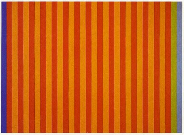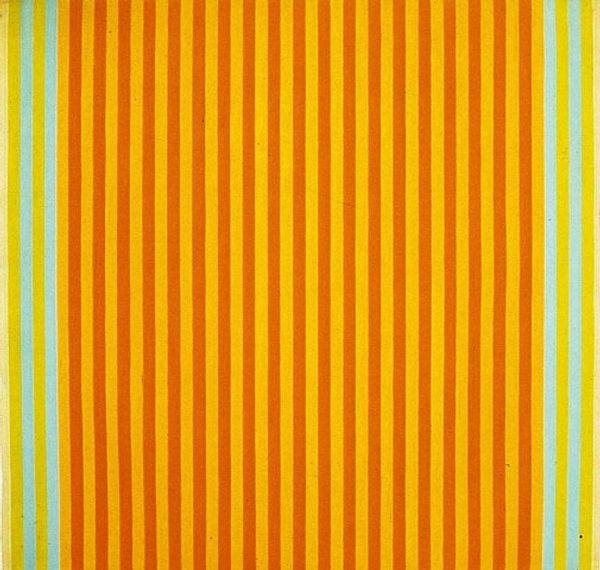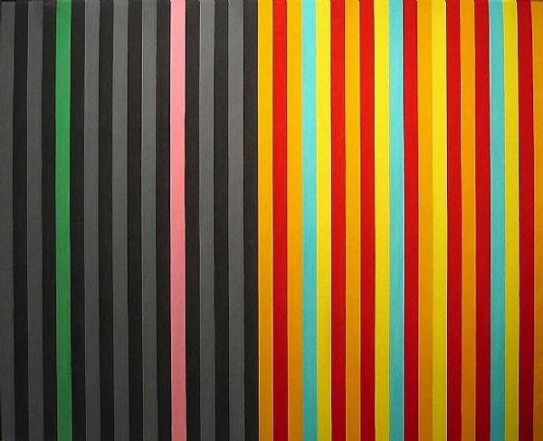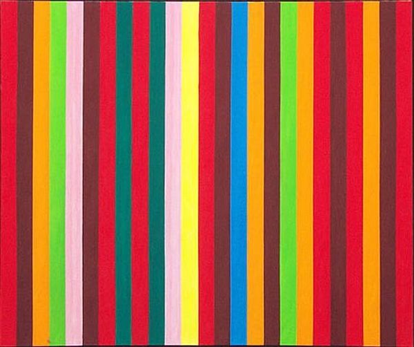 Curator: Looking at "Entladung Et I," created by Gunter Fruhtrunk in 1981, what's your first take? It's an acrylic piece, playing with those bold lines. Editor: Wow, it just vibrates. Those vertical bands of red and yellow seem to buzz against each other, like a visual argument, but in a strangely harmonious way. Gives me a bit of a headache if I stare too long, though! Curator: It's definitely got that op-art punch. Fruhtrunk's work is often seen within the context of hard-edge painting and color-field painting. There is, I believe, a precision to this type of abstraction. However, can we also look at the historical moment? Post-war Germany, a drive towards order and rebuilding... Editor: Orderly rebuilding with a splash of almost-toxic color! It does feel very German somehow. All that efficiency and engineering, but then—BAM—stripes that scream. It's like Bauhaus gone wild after a few too many beers, don’t you think? Curator: An interesting perspective. These choices— the relationship between form, color, and composition— are never innocent. The deliberate selection and application are laden with cultural meaning. I always read something bordering on resistance in abstraction, if you understand me. Editor: Absolutely. Like, "I refuse to depict your reality, I'll make my own!" Although sometimes I wonder if abstract artists just had trouble drawing figures. I'm kidding…mostly. It makes me think though— what if the ‘discharge’ in the title is about getting rid of old, stuffy traditions? Curator: Yes, "Entladung," or "Discharge." This piece does ask us to consider what’s being released or negated through this very deliberate use of geometry and color. How might those hard lines offer both constraint *and* liberation? Editor: Liberation through geometry… sounds like an art school manifesto! I'm sticking with my Bauhaus-gone-punk theory. Makes it more fun to look at. Thanks for grounding me though— I often forget the socio-political baggage these paintings carry. Curator: And thank you for always keeping it fun. It is also, in the end, about what we *feel* when we look, not only about what we *know*. Editor: Exactly! Now, if you’ll excuse me, I’m off to find some neon paint and get liberated. Wish me luck.