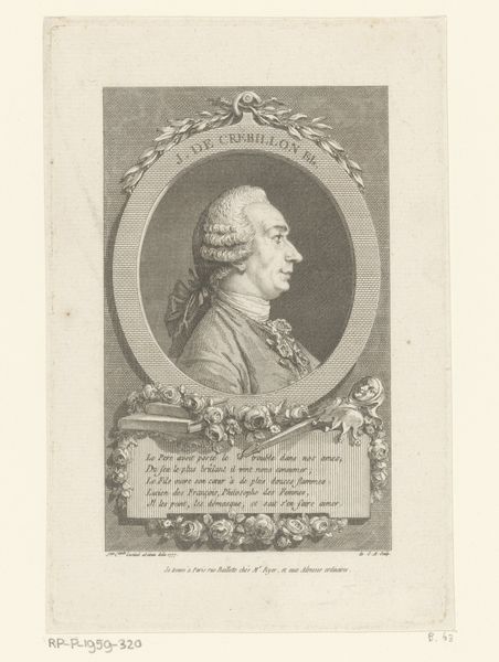 Gottlieb Leberecht Crusius created this print of Anne Claude Philippe de Caylus, in the 18th century. Caylus, seen in profile, is framed by an oval, a shape that speaks to a long tradition of portraiture dating back to antiquity. The profile, popularized by Roman emperors on coins, suggests a conscious connection to the power and authority of the past. We see this echoed in Renaissance portrait medals and even later in Neoclassical cameos. Each era employs the profile to evoke a sense of timelessness. Consider the psychological implications of choosing a profile. It presents a controlled, unemotional view, concealing the gaze and inviting the viewer to project their own interpretations. Perhaps it’s a means of idealizing the sitter, simplifying the complexities of the individual into an emblem of status and intellect. This motif appears throughout history, evolving in form but retaining its fundamental ability to communicate power and enduring legacy.
