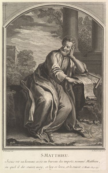 Willem van Swanenburg created this print called 'Boetvaardige Zacheüs' or 'Repentant Zacchaeus' using engraving. It depicts a biblical story set against the backdrop of the Dutch Golden Age. Look at how the image uses visual codes to convey meaning. We see Zacchaeus, the tax collector, kneeling in repentance, his hand on his chest, and the money he has illicitly gained spilling out before him. In the background we can see the figures of Jesus and his followers. During this time, the Dutch Republic was undergoing significant social and economic changes due to its burgeoning trade and colonial expansion. The image suggests a concern for moral issues amidst prosperity and perhaps critiques the ethics of wealth accumulation. The choice of a biblical subject allowed artists to comment on contemporary issues through historical narratives. To understand this artwork better, researchers can study the religious and social history of the Dutch Republic, looking at sermons, pamphlets, and other visual sources. Ultimately the meaning of art is rooted in its social and institutional context.