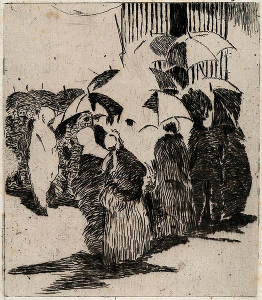 Frantisek Kupka made this drawing, ‘Algiers’, with ink on paper, and the first thing you notice is how the agitated marks create a sense of chaos. The lines aren't just describing things; they're actively *doing* something, like little scratches of energy. Look at how he uses these frantic, almost scribbled lines to depict a crowd scene, all drama and heightened emotion, as if the ink itself is participating in the riot. The texture feels raw, immediate, and the monochromatic palette throws the scene into stark relief. Note the details around the figures at the front; see how the marks around their eyes and mouths amplify the drama, emphasizing the terror and frenzy. This work reminds me of Grosz, but looser, more immediate. It's a great example of how art can be a conversation across time, artists riffing off each other, pushing and pulling at ideas. Kupka isn’t giving us a clear, objective view, he’s embracing ambiguity and multiple interpretations, so you can come to your own conclusions.
