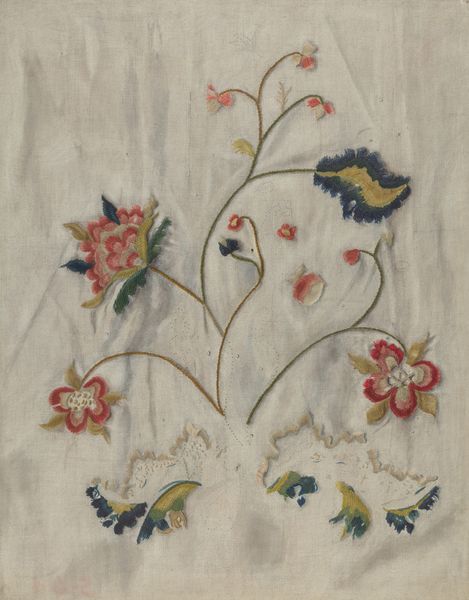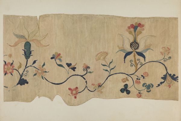 This Embroidered Christening Blanket was made by Phyllis Dorr, although we don't know exactly when. The delicate floral patterns have been made with careful stitches, creating a lovely, handmade object. The choice of colors is gentle and inviting, creating a sense of comfort and warmth. You can almost feel the maker's hand guiding the needle through the fabric, building up the images with tiny points of color. Look closely at the stems that weave through the flowers; the stitching is so delicate, creating a sense of movement and growth. It reminds me of Cy Twombly, another artist interested in line and gesture to make something beautiful. This blanket is more than just an object, it's a testament to the love and care that goes into creating something by hand. It embraces imperfections and multiple interpretations.
