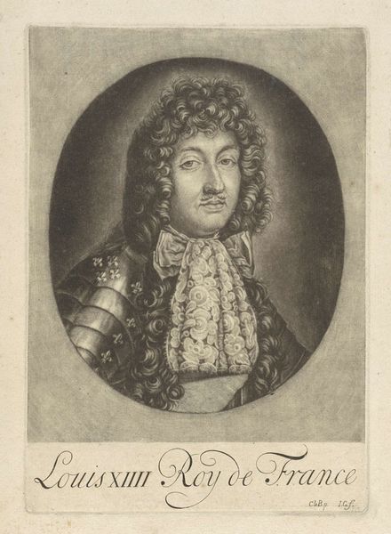 Curator: This is a captivating engraving, isn't it? The Rijksmuseum holds this portrayal of Eugéne-François, Prince of Savoy, rendered between 1673 and 1731 by Pieter van Gunst. Editor: The Prince looks every bit the formidable warrior of his time. I must say, there’s a striking formality despite the flamboyant Baroque curls. It’s an intriguing tension. Curator: Observe how Van Gunst used varied line weights. The meticulous hatching around the face and the armor create a beautiful contrast against the smoother textures elsewhere, effectively capturing light and shadow. Semiotically, it presents a powerful reading of status. Editor: Absolutely. He was indeed a powerful figure. The Prince of Savoy was not only a military leader but also a statesman in the service of the Habsburgs. Note the cannon at the bottom; his victories against the Ottomans at the time resonated profoundly with the populace and helped to consolidate power structures across Europe. The engraving’s distribution helped shape public perception. Curator: The oval frame also contributes significantly. It isolates the subject, emphasizing the psychological depth. I think it adds an extra layer of complexity. Notice how the details in his armour, with the fine curves and angles, convey authority? Editor: True. Though such prints often circulated widely, this wasn’t always accessible. This speaks to the role prints had in creating fame but the extent of its influence on common people might be overstated. However, it obviously affected the educated, richer parts of the population, of course. Curator: It’s truly a lesson in form and function. Each stroke seems carefully placed. The composition isn’t merely representational; it embodies the cultural and social status it depicts. Editor: An important artifact that reveals how societal stature gets visualized through prints, with close attention to detail, like we are discussing. A lasting demonstration of how image-making upholds or negotiates history. Curator: Indeed. We dissected a formal and conceptual framework with so few lines and simple curves. Editor: Agreed. A fitting reminder to observe the deeper nuances in art’s political engagement.