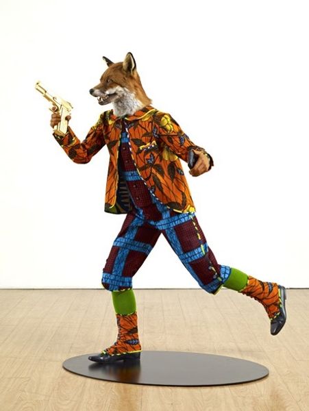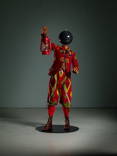 This is "Planets in My Head (Trumpet Boy)," by Yinka Shonibare. It’s hard to say exactly when it was made, but what strikes me immediately is the playful juxtaposition of textures and colors. The vibrant Dutch wax fabric, a signature of Shonibare’s work, clashes wonderfully with the cool, metallic gleam of the trumpet. It's like he's saying art isn't about perfection, it's about mixing it up, and letting the unexpected happen. Look at how the fabric drapes and folds, giving the sculpture a sense of movement, as if the figure is swaying to the music only he can hear. And that globe for a head? It's a beautiful, absurd touch, hinting at the boundless possibilities of imagination and the universal language of art. For me, Shonibare’s work is always a reminder that art is a conversation that spans cultures and continents, and invites us all to join in the dance. It reminds me a little of David Hammons, with the use of found materials and references to art history to engage with questions of identity, race and colonialism.