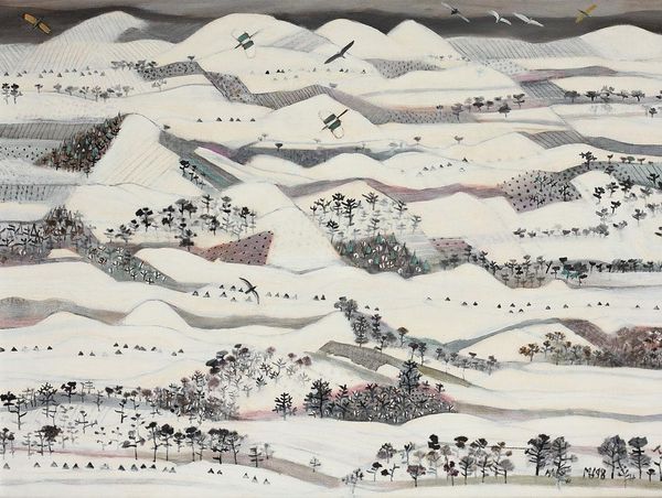 Viorel Marginean made 'The Winter' with paint, it looks like maybe oils, and an open heart. Look at the way he simplifies and builds up the scene like it's made of soft blocks. The painting is thick with a kind of knowing naivety, a refusal to be slick. I love the small details, the way the red roofs pop against the muted snow, and how the sheep in the foreground become simple shapes grazing, like dark brushstrokes themselves. Check out the odd floating forms near the top – are they clouds, or something else entirely? They’re really goofy looking. They’re like thoughts floating above the landscape. There's a real conversation happening here with artists like Pieter Bruegel, who also captured the lives of ordinary people in detailed landscapes. But Marginean brings his own quirky vision to the canvas, reminding us that art is always about seeing the world anew.