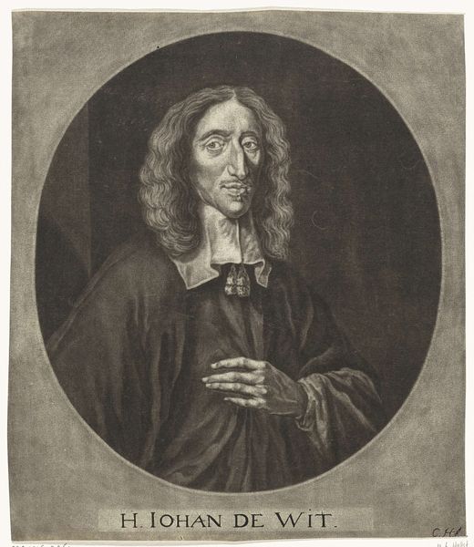 Editor: Here we have Caspar Netscher's "Portrait of Johan de Witt," created between 1642 and 1684. It's an engraving, a print. It strikes me as a very formal, stately portrait, almost as if de Witt is consciously projecting an image of power. What do you see in this piece? Curator: It’s more than just a stately portrait; it’s a deliberate construction of power, yes, but let’s consider the historical context. De Witt was a hugely influential figure during the Dutch Golden Age, but his political trajectory and ultimate demise were steeped in factionalism. How does Netscher’s portrayal engage with these competing narratives about de Witt's role? Editor: That's interesting. I hadn't thought about the factionalism. So the way he’s posed, the clothing… it’s all carefully chosen to project a specific idea of who he was? Curator: Precisely. The opulent robe, the setting…they all reinforce an image of authority and sophistication. But, knowing that this image was made and circulated during a time of intense political conflict, it begs the question: who was this image *for*? Was it an attempt to consolidate power, or perhaps a form of posthumous rehabilitation after his grisly assassination? Editor: So, the portrait becomes less about capturing his likeness and more about controlling his image and legacy. Curator: Exactly! And how that legacy continues to impact interpretations of Dutch identity and power dynamics even today. Who gets remembered and how? Who controls that narrative? Editor: This makes me realize that portraits can be really powerful forms of political statements. I never thought of them that way before! Curator: And now you can consider art through that lens. That’s the first step in unpacking how historical events are seen through a work of art.
