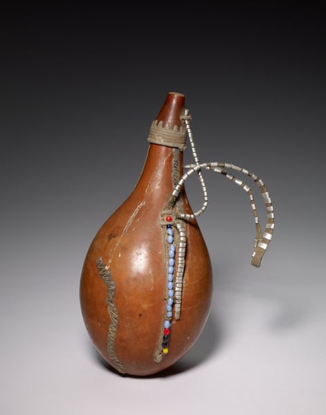 Curator: This striking piece, made of silver, is called "Begging Bowl". It dates from 1692 to 1743 and was crafted by Yar Muhammad. It’s a stunning example of Islamic decorative art. Editor: My first impression is the visual weight it carries despite, seemingly, its function being tied to notions of humility and need. The dark, almost black body contrasted against the ornate silver is striking. Curator: Indeed. It is important to contextualize this piece within the socio-political realities of the time. Such ornate objects commissioned during this era often played roles within specific religious and social performance, where power and wealth would have been concentrated. Editor: Absolutely, we should consider who would have been in possession of something so elaborately designed when it's ostensibly about begging, about asking for alms? Is the performative act of humility subverted by the material extravagance? Curator: Perhaps. It is an elaborate object—more so than the term 'bowl' implies. Note the fine silver chain that suspends the form and the pierced silver decoration at the rim of the bowl. Editor: I'm really drawn to that contrast between the refined silver work, almost lace-like in places, and what seems like the raw, dark material forming the body of the bowl. It speaks to a visual hierarchy—a very clear display of what is considered precious versus functional. How does this complicate the idea of charity when there’s such ostentation involved? Curator: One interpretation lies within its display, within its artistic merit that elevates mere function into high art, which serves its own purpose in the social economy. This shifts the discourse, in the contemporary setting, as a cultural artifact within museum spaces and the history it espouses. Editor: It makes you question the assumed power dynamics inherent in giving and receiving. It really urges one to think about whose stories get told, and whose generosity is remembered—particularly in contrast with the frequent erasure of those receiving that help. Curator: It makes one ponder about luxury as devotion or artifice, and the historical and societal narratives interwoven within such displays. Editor: Exactly, and what happens when we hold a mirror up to the values embedded within these objects?