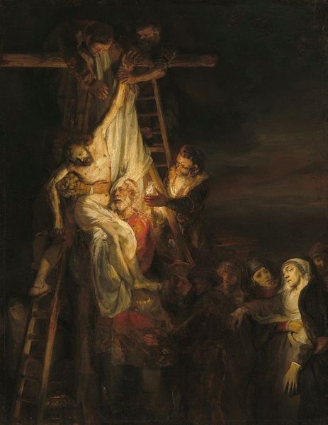 Rembrandt van Rijn painted ‘Christ Appearing to Mary Magdalene, ‘Noli me tangere’ using oils to create dramatic contrasts. The dark shades define the background and Magdalene's form, while Christ is bathed in light, creating an almost tangible sense of divine presence. The composition is structured to emphasize the encounter's emotional and spiritual tension. Christ stands tall, slightly ethereal, set against a backdrop of deep shadows. Mary Magdalene is in contrast, kneeling in the lower right, her posture conveying surprise. The use of light here is not just illustrative but structural. It directs our gaze and highlights the themes of revelation and recognition. The soft, diffused lighting around Christ dematerializes the figure and makes Him appear to come from another world. Rembrandt uses light and shadow to explore the conceptual boundary between the earthly and the divine. He reminds us that seeing is not merely a physical act but is intertwined with belief.