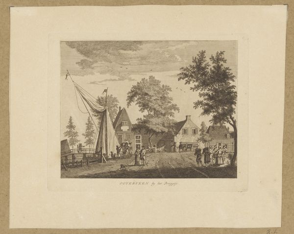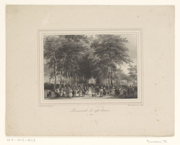 Curator: Here we have Hendrik Wilhelmus Last's "Gezicht op het Plein in Den Haag met standbeeld van Willem I," dating roughly between 1827 and 1873. It’s currently held at the Rijksmuseum. Editor: It feels so… contained. A gentle scene. The light pencil work gives it an ethereal quality, like a memory fading at the edges. Curator: I agree. Let's consider Last's process. The aged paper itself tells a story. Think about the labour involved in creating and distributing these prints. It speaks to a growing market for imagery of national identity and civic pride. The use of pencil and perhaps some light ink washes also points to a shift towards accessible art-making practices, maybe even intended for a sketchbook. Editor: I'm immediately drawn to the statue of Willem I, the imposing figure overlooking the scene. Statues like these were powerful symbols of national unity. They reinforced a cultural memory of leadership and stability during a time of shifting political landscapes. It stands sentinel amidst daily life. Curator: Precisely! The statue isn't merely a representation; it's a product. How was the bronze sourced? Who were the artisans who cast it? Last's rendering indirectly asks these questions, because without the raw materials and labour, there is no iconic sculpture. This intersects with social context, considering how class structures enabled such projects. Editor: And that contrast is fascinating. Willem, literally set in stone, juxtaposed with the everyday folks in the square – their attire, the way they carry themselves. Last is showing us how those grand symbols intersect and integrate into the common person’s life. Each element in the cityscape carries an emotional and political resonance. Curator: I appreciate your emphasis on emotional context! The choice of rendering, combined with distribution networks to make Last's landscape widely accessible and perhaps influence growing nationalist ideals. This simple work invites critical consideration. Editor: Exactly. Even this small-scale pencil sketch triggers so many layers. It proves images have a staying power.