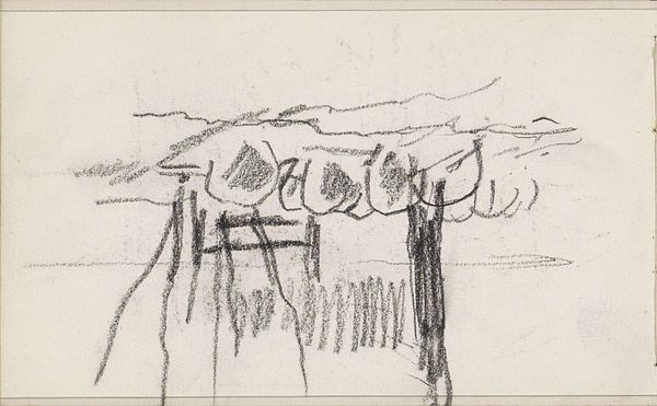 Anton Mauve created this sketch, "Groep staande figuren aan de vloedlijn," capturing figures at the water's edge. Observe how the schematic representation of the figures, standing together, echoes a timeless motif found across cultures. The way they are grouped recalls ancient depictions of communities, reflecting shared experiences and collective identity. Think of the Egyptian friezes where rows of figures narrate stories of common life. This symbolic gathering at the edge – the liminal space where land meets water - resonates with ideas of transition and reflection. It invites us to consider the subconscious pull of the shore, a place of both departure and return, symbolizing life’s fluid and ever-changing nature. The emotional weight of such communal scenes engages viewers on a deep, subconscious level, reminding us of our shared humanity and the cyclical nature of existence, echoing across time.