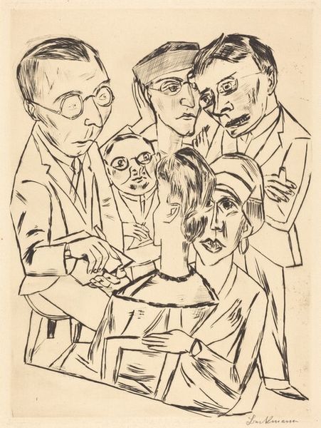 Laura Knight made this etching, “Some Clowns,” using what looks like simple lines to capture something complex. The marks are economic but evocative; she is unafraid to leave areas of the plate untouched. This builds up a world of layered characters. Up close, you can see the physicality of the etching. The plate has bitten into the paper in places, leaving a trace, and in others, the line disappears into the surface. Knight uses this to describe a range of textures, from the dense hatching on the clown's jacket, to the lighter cross hatching, suggesting a shiny nose. Each mark is carefully placed to build up the overall image. The clown at the front has a hand in a fist, a small detail, but it adds to the tension and realism of the scene. Knight's work reminds me a bit of Daumier, capturing the everyday with humour. Like him, she embraces the messiness of life, showing that art doesn’t always need to be polished to be powerful.