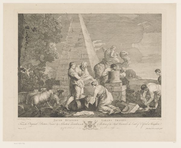 Paolo Toschi created this print, "Christus bezwijkt onder het gewicht van het kruis" or "Christ Falls Under the Weight of the Cross", using engraving techniques. Toschi lived through a period of significant political upheaval in Europe, including the Napoleonic Wars and the rise of nationalism. This work depicts a moment of profound suffering and vulnerability. Christ's physical collapse under the weight of the cross becomes a stark metaphor for the burdens of humanity. The women reaching out to him represent compassion. The Roman soldiers reflect power and oppression. Toschi masterfully captures the emotional intensity of the scene. Consider how the artist uses the composition to evoke feelings of sympathy and despair. The image prompts reflection on themes of sacrifice, injustice, and the human capacity for both cruelty and empathy. In what ways does this artwork resonate with contemporary discussions about power, suffering, and redemption?