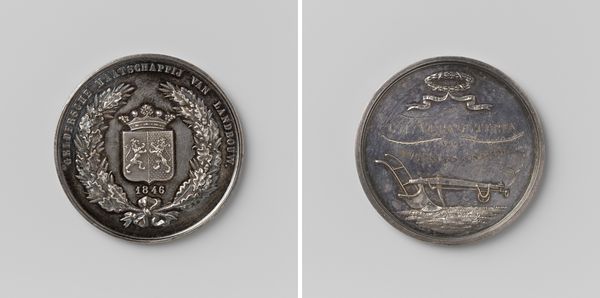 This silver plate for a gorget, crafted by Jacob Hendrik Onderdewijngaart Canzius, presents us with a compelling tableau of power and heraldry. Dominating the composition is the crowned coat of arms, draped with a mantle, symbols of authority and lineage. The crown, a universal emblem of sovereignty, immediately conveys the weight of leadership. The heraldic shield, quartered with various figures, speaks to the bearer's ancestry and claims. The iconography of heraldry can be traced back through centuries of emblems, each iteration adding layers of meaning. Think of the eagle, a symbol of the Roman Empire, reborn in countless forms across Europe. The collective memory of these symbols is deeply embedded in our subconscious, evoking emotions of pride, loyalty, and even fear. Here, these symbols of authority create a powerful effect, stirring deep emotions connected to the perception of power, a phenomenon where the past constantly reshapes our present.