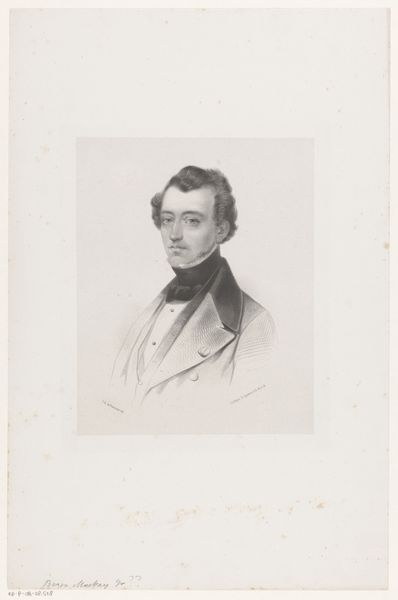 Curator: This is a pencil drawing entitled "Portret van François Haverschmidt, bekend als Piet Paaltjens," dating back to sometime between 1832 and 1873. The work's origins lie in the romantic period. Editor: The mood is undeniably melancholic, isn't it? The sitter’s downward gaze and arms crossed evoke a sense of internal conflict or quiet resignation. The pencil work feels quite delicate. Curator: Considering Haverschmidt was a Dutch minister and poet writing under the pseudonym Piet Paaltjens, and grappling with deep existential questions, it is fair to see the romantic roots reflected in his inner torment and spiritual life, made manifest in the figure’s almost ethereal form. Editor: Yes, and from a material standpoint, think about the pencil itself – a tool easily accessible, enabling widespread portraiture production beyond elite painters. The very accessibility influenced who got represented, and how. We see class structures disrupted even within these artistic renderings. Curator: Absolutely. The piece also begs the question about societal constraints and how identities are carefully constructed, even manipulated, depending on what social sphere is involved. How did these constructs affect both the sitter and the artist's self-expression? Editor: And how does the labor invested in even a "quick" pencil sketch inform its perceived value? Was this for mass consumption or commissioned? Those choices influence what materials are acquired, and even who has access to art at all. Curator: These are critical questions when analyzing an artwork. The themes explored here resonate with ongoing dialogues concerning mental health, societal roles, and the search for authenticity, allowing us a deeper understanding of marginalized experiences. Editor: Thinking about how different the experience of this period was from our own – the pace of life, access to visual information…it changes my perception, how deeply I interpret not just its visual weight but also how the materials used were shaped by his present condition.