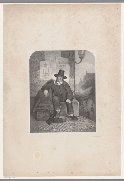 This is a print by Jean-Baptiste Madou, portraying a knife grinder with his tools. The most striking symbol here is not just the tools of his trade, but how they are carried—upon his back, transforming him into a beast of burden. Consider the ancient myth of Atlas, condemned to carry the world on his shoulders. Similarly, the knife grinder bears the weight of his livelihood, a burden that shapes his very posture. This motif of bearing weight appears across cultures; from the Egyptian god Shu, holding up the sky, to depictions of Christ carrying the cross. But note the difference: the knife grinder's burden is mundane, a daily toil. The position of his hand touching his neck could be read as a sign of discomfort or worry. It evokes a sense of empathy, a recognition of the universal struggle to bear the burdens of existence. The image resonates because it taps into a primal understanding of labor and survival. It is a reminder that even the simplest of trades carries its own weight, a weight that echoes through time and connects us to countless others who have carried their own burdens.