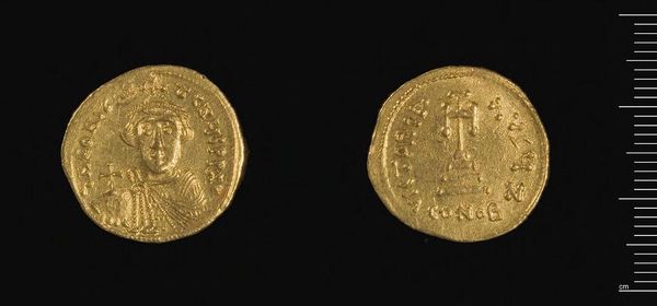 Editor: This is a gold coin of Leo III. The artistry is impressive, even on such a small scale. What can we learn from the way it was produced? Curator: The coin's material value is inseparable from its symbolic and economic function. Consider the labor extraction required to obtain the gold, then the skill of the die maker. The coin embodies imperial power through these means of production and consumption. Editor: So, it's not just art, but a statement about power and resources? Curator: Precisely! It’s about controlling both the message and the means to disseminate it. What does the image on the coin communicate about the emperor's authority? Editor: I hadn't thought about it that way. I guess everything, even a coin, has a story about labor and social structures embedded in it.
