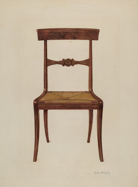 Editor: This is "Wash Stand" a coloured-pencil drawing, circa 1940, by Della Button. It looks like it was drawn with incredible care; the texture of the wood almost makes you want to reach out and touch it. What's your interpretation of this piece? Curator: Isn't it wonderful? To me, it whispers of quiet mornings and gentle routines. There's something incredibly intimate about a washstand; it was where you prepared yourself for the world each day. But beyond that… does this image spark any feelings for you? Editor: It feels very personal and domestic, something someone would draw of their own home. Like a precious object. Curator: Precisely! It makes you wonder about Della Button, doesn’t it? I get the impression this wasn't just a washstand; it was *her* washstand. Each carefully rendered line seems infused with affection. The choice of colored pencil feels intentional, too – warmer, perhaps, than pen and ink would have been. Do you agree? Editor: Definitely, the colored pencil gives it a softer feel than a stark line drawing. There's an incredible amount of detail! Curator: Yes! The artist certainly did. Now think about how functional that washstand would be, or rather, if the drawing is actually functional in anyway? Is the purpose practical, as an historical document, or artistic as a composition or impression of what the washstand looked like. It raises a lot of questions about the role of art and everyday life doesn't it? Editor: It certainly does. I hadn't really considered what purpose drawing something so simple might have! Curator: And that's the beauty of it, isn't it? We start with something familiar and end up questioning so much more. Editor: I learned a lot about seeing the everyday in art in a fresh, thoughtful way today. Thanks!