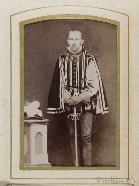 Jan Goedeljee captured this young man, thought to be E. Smit, in costume using photography. The ruff around his neck and the elaborate tunic are visual echoes of the Elizabethan era. The ruff, initially a modest frill, expanded into a symbol of status and elegance in the 16th and 17th centuries. We see echoes of this in later periods when formality and status were performed through dress. Think of the high, starched collars of the late 19th century. Like the ruff, these collars visually ‘elevated’ the wearer, creating a sense of distance and authority. This impulse to signal status isn't merely vanity. It reflects deep-seated social dynamics, a primal need to assert oneself within a hierarchy. Observe how the elaborate costume evokes nostalgia, an emotional yearning for a perceived 'golden age.' This is a cyclical phenomenon, a recurring desire to reconnect with an imagined past.