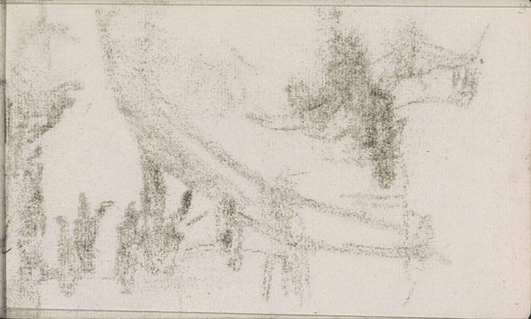 Editor: Here we have Anton Mauve’s “Landschap met bomen,” a landscape rendered in graphite around 1876 to 1879. It feels very immediate, like a fleeting impression. What strikes you most about this drawing? Curator: The immediacy you note points us to Mauve's artistic process. We see the very deliberate application of graphite, almost aggressively layered in certain areas, creating a tangible density. Consider the availability and cost of paper and graphite in the late 19th century—these materials weren't neutral. Editor: So the materials themselves held a different kind of significance back then? Curator: Absolutely. Graphite, while relatively accessible, still represented a degree of investment. The artist’s choice and handling of it indicates a considered, if rapid, execution. Moreover, note the paper; its quality and the implied purpose impact our understanding. Was this a preparatory sketch? Or was it intended as a standalone artwork? Think about the role of the art market. Was there a demand for smaller, more affordable works? Editor: That makes me see the work in a different light. It’s not just about the image, but about access and consumption. Curator: Precisely. The drawing also speaks to the evolving social status of landscape. What type of landscapes were popular during the late 19th century? Do those popularity contests reflect a longing for pastoral spaces amid increasing industrialisation and urbanization? Think about that too. Editor: So, Mauve's landscape isn’t just a pretty picture; it’s entangled with social and economic conditions. Thanks; I will definitely see all landscape drawing from the era differently. Curator: Glad to have helped bring a wider context to this piece for you. It's all in the materiality!