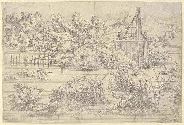This etching, *Farmhouse on a Canal near Haarlem,* gives us a glimpse into the Dutch countryside through the skilled application of line to paper. The anonymous artist has used the etching process to create a scene rich with detail, from the thatched roofs of the farmhouses to the delicate rendering of the trees. Etching involves coating a metal plate with a waxy, acid-resistant substance. The artist then draws through this coating, exposing the metal. When acid is applied, it bites into the exposed lines, creating grooves that hold ink. The plate is then inked, wiped clean, and pressed onto paper, transferring the image. The precision of the etched lines allows for a remarkable level of detail, capturing the textures and forms of the rural landscape. Look closely, and you will see the labor involved in maintaining the farms, and the everyday life of the people who live there. The choice of etching, a relatively accessible printmaking technique, suggests a desire to disseminate this image widely. It speaks to the growing market for landscape views during this period, reflecting a broader appreciation for the beauty and value of the Dutch countryside and the people who worked it.