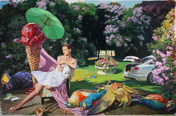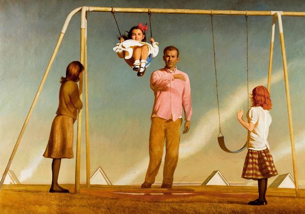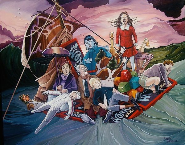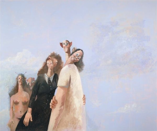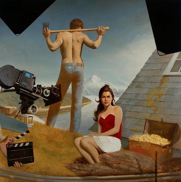 Bo Bartlett painted The Samaritans in oil, and you can tell that he has really worked the surface in layers. The way Bartlett handles paint reminds me of filmmakers like David Lynch. The figures are so realistically rendered that you feel like you know them, even though the narrative is totally surreal, dreamlike, and unsettling. Take, for example, the figure in the dunce cap. This area is painted in more muted tones. The cap itself is almost sculptural. It's these kinds of surprising formal devices that make the painting so rewarding to look at. I see in Bartlett a cousin of Odd Nerdrum, who has a similarly unsettling take on figurative painting. But where Nerdrum goes for drama, Bartlett finds a way to show quiet dignity, which makes the painting both disturbing and beautiful. It doesn't resolve, but that's the point.