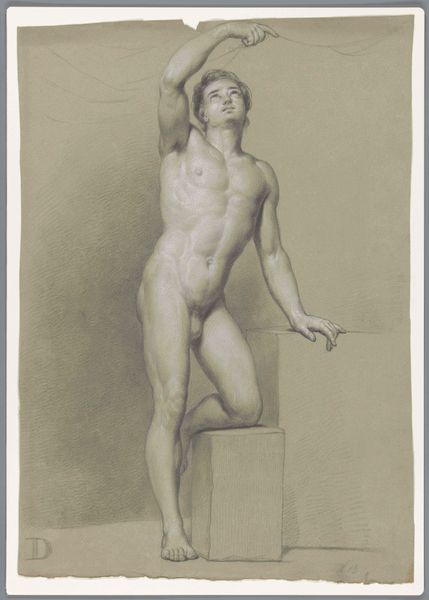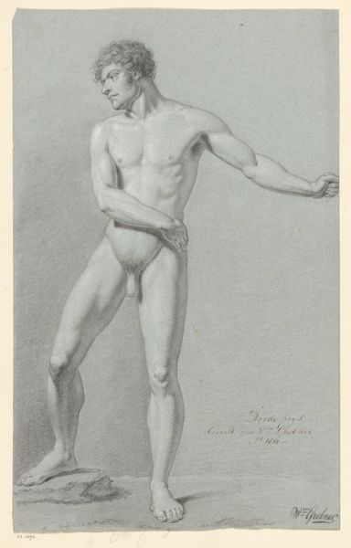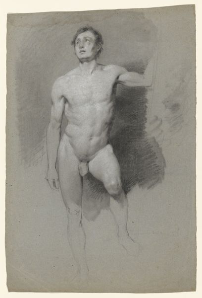 Henri-Guillaume Chatillon rendered this drawing, titled 'Apollo or Adonis', with delicate strokes on paper. The sculpture-like figure, youthful and nude, evokes classical ideals of beauty. Consider the implicit nudity, a symbol of vulnerability and purity, deeply rooted in classical antiquity, where the unclothed form represented heroic virtue. The body stands unashamed. We see this same unashamed representation in Renaissance depictions of Adam and Eve. The placement of the figure beside the tree trunk suggests an earthly connection, reminiscent of Adonis, whose life and death were intertwined with nature's cycles. His sorrowful countenance reminds us of the profound emotional resonance embedded in such imagery—a mirror reflecting humanity’s eternal dance with mortality. The image resonates with motifs that continually resurface, reflecting our enduring fascination with the human form, beauty, and our connection with the natural world.