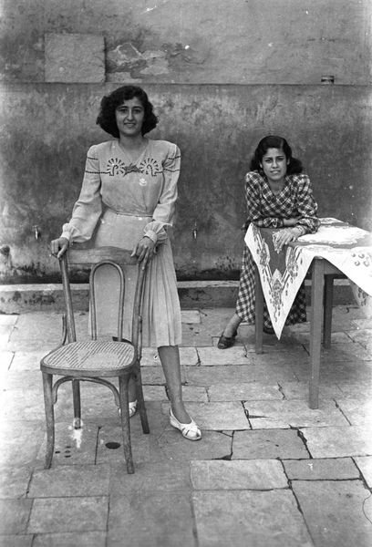 Curator: This compelling black and white photograph, titled "Student of Aisha Om el Mo’minin School for Girls. School courtyard, Saida, Lebanon, 1948-49," was taken by Hashem el Madani and later revisited by Akram Zaatari. Editor: It feels incredibly intimate. The girl's gaze is direct, almost challenging. There's a weight to it, a sense of quiet determination. Curator: It's important to remember the context. Madani's studio documented everyday life, playing a crucial role in forming Saida's visual memory, and Zaatari's re-presentation brings questions of archives and representation. This image invites us to consider the role of women's education in post-colonial Lebanon. Editor: Absolutely, and the backdrop—the stark wall with a simple tap—amplifies the socio-political landscape. It underscores the limited resources yet speaks volumes about resilience and the pursuit of knowledge. Curator: Indeed, these photographs, often used for identification or documentation, took on new meaning through re-examination, sparking dialogue around identity, agency, and historical narrative. Editor: This image reminds us that photography is never neutral. It always embodies a specific point of view, revealing and concealing in equal measure. Curator: Precisely. The image offers an invitation to question the power dynamics inherent in image-making and interpretation.