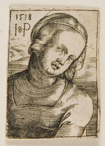 Sebald Beham made this tiny print of a young woman in 1518 using the intaglio process of engraving. Here, the artist would have used a tool called a burin to cut lines directly into a copper plate. The plate would then be inked, and the surface wiped clean, leaving ink only in the engraved lines. Finally, it would be pressed onto a sheet of paper, resulting in a print. The linear quality we see in the image – the way the figure is built up from many fine strokes – is a direct result of this process. Note how the density and direction of the lines create areas of light and shadow, giving volume to the woman’s face and dress. Engraving demanded considerable skill and time, positioning the print as a valuable commodity in its day. Yet, because prints could be reproduced many times, they also had the potential to reach a much wider audience than paintings or sculptures. So, we can appreciate this work not just for its delicate execution, but also for its place in the history of democratizing art.