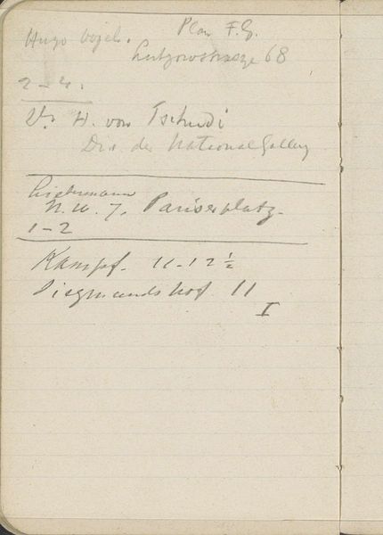 Editor: So, here we have Isaac Israels' "Annotaties," which translates to annotations. It's a drawing in ink on paper, placing its creation sometime between 1875 and 1934. It gives off a feeling of…ephemerality, doesn't it? Almost like catching a glimpse of a forgotten thought. What do you see in this piece? Curator: I see layers, not just of ink, but of time and intention. It resembles a page torn from a merchant’s ledger, but its symbolic weight lies in how casually, yet deliberately, these words were captured. The ink itself speaks of impermanence, a contrast to the enduring nature of art. Doesn't it feel like a preservation of fleeting, perhaps even mundane, moments? Editor: Definitely! The word "Singapore" jumps out – does that hold any particular significance? Curator: Absolutely. "Singapore" as a geographical signifier pulls in threads of trade, colonialism, and the artist's personal experience, perhaps a memory, a connection, or simply a financial transaction, imbued with exoticism. And these numerical notations... how do they resonate with you? Do they feel purely practical or is there something more? Editor: I initially thought of it as just bookkeeping. But the way "100" is written... and crossed out… adds a human element. It's like seeing the artist’s hand making decisions, changing his mind. Curator: Precisely! We see more than ink; we see decisions, revisions. It brings to mind palimpsests, where older writings exist beneath newer ones. Each mark contains a record, creating layers of meaning and perhaps a story that refuses to be fully uncovered. Editor: I never considered it that way. Now I see that "Annotaties" captures not just a transaction but a moment of thought, of presence. Thanks! Curator: My pleasure. It is amazing how simple notes, become powerful relics with historical, economic, and emotional value.
