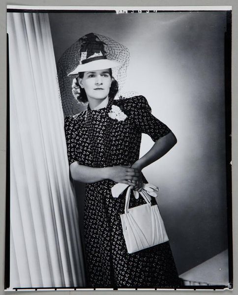 This photographic portrait was made by Paul Gittings using a gelatin silver process, which was a dominant mode of photographic production by the early 20th century. The image's stark contrast and smooth tonal range are characteristic of this technique, achieved through a chemical process involving silver halides. But beyond the photographic method itself, we can consider the amount of labor and materiality involved in the sitter's garments and accessories. The pearls, the dress, and the hat all speak to a culture of fashion, of which photography was always a part. It is important to remember that each of these objects was also made through the physical labor of garment and hat makers, and through the cultivation of pearl farms. Paying attention to materials and production helps us understand not just the image, but also the broader economies of labor and consumption it implies.